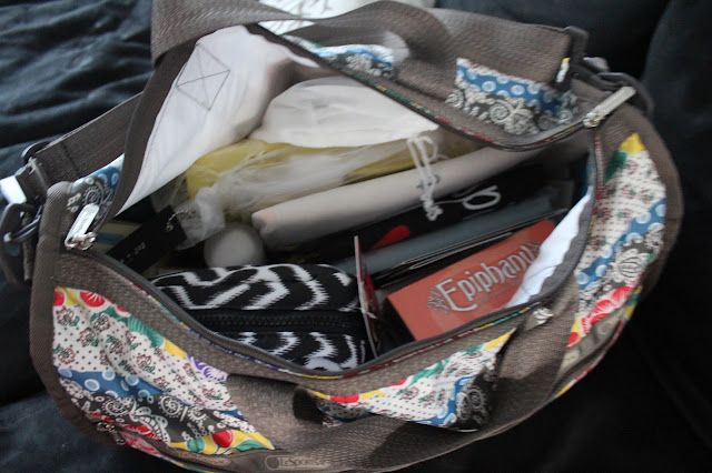 The Lesport duffle bag filled with goodies as our gift bag from Lucky.